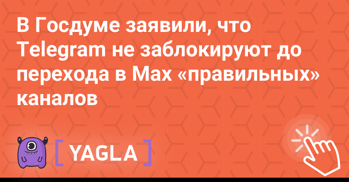 В Госдуме заявили, что Telegram не заблокируют до перехода в Max «правильных» каналов