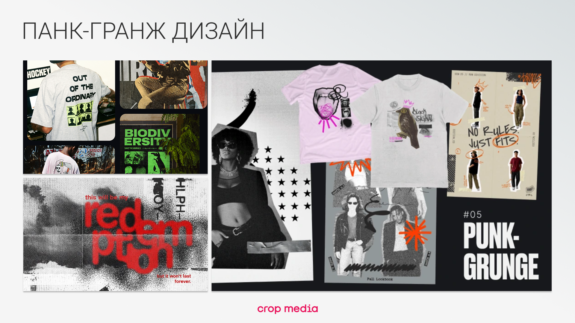 Рваные текстуры, коллажи, граффити-шрифты и намеренная визуальная «грязь». Дизайнеры используют панк не чтобы бунтовать — а чтобы привнести душу в алгоритмы.