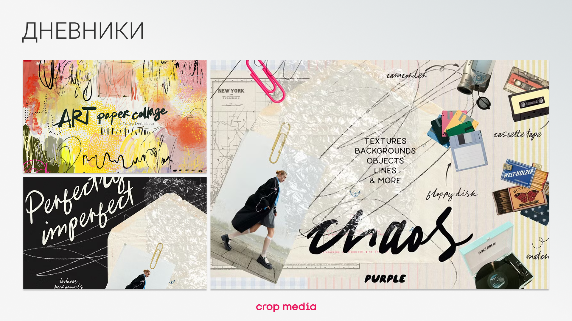 Где применять? Контент для соцсетей в стиле скрапбукинга (особенно lifestyle-бренды и авторские проекты), email-рассылки с элементами mixed-media, крафтовая упаковка, брендинг курсов и мастер-классов.