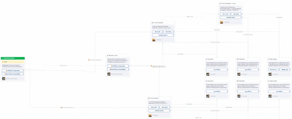 Для каждого комплекса был создан Telegram-бот и настроены сценарии работы через сервис https://salebot.pro/