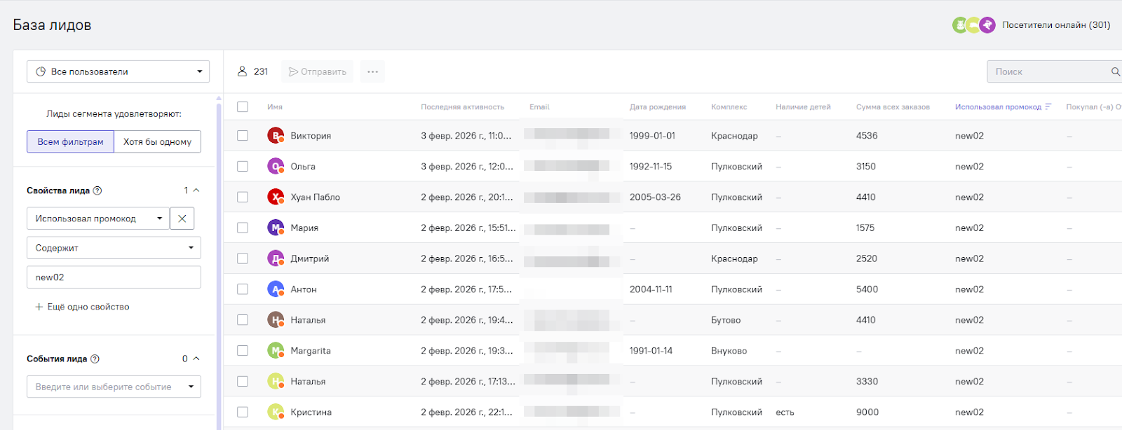После анализа базы мы увидели, что в ней есть много контактов, которые ещё ни разу не были в комплексе и ничего не покупали, но с ними уже можно выстраивать коммуникации.