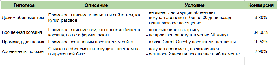 Мы постоянно тестируем не только офферы, но и каналы коммуникаций. То, что показывает лучший результат, оставляем на постоянной основе и масштабируем как подтверждённую гипотезу.