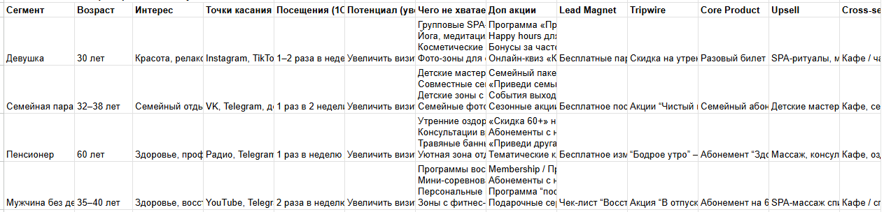 Дальше на основе сегментации и когортного анализа мы собрали предложения, учитывая: