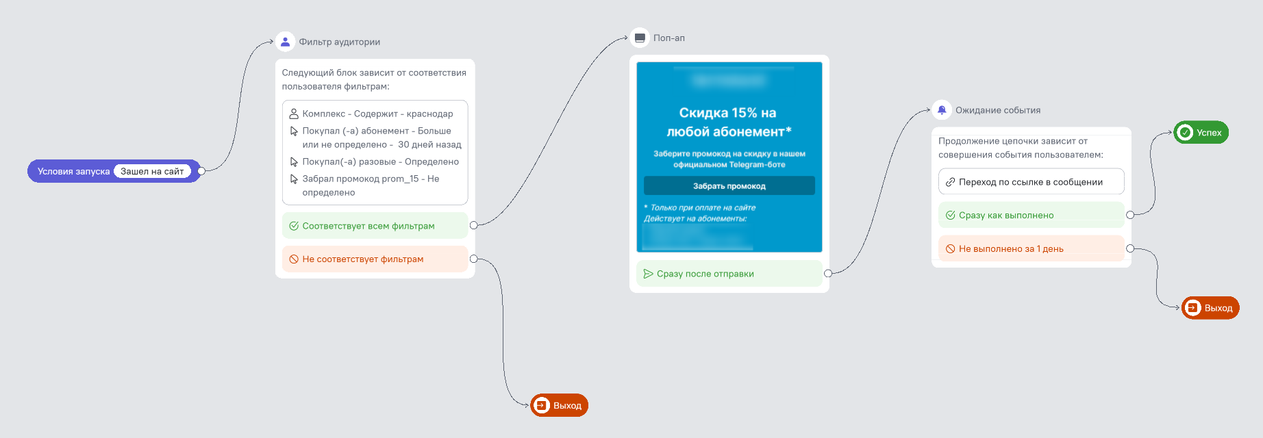 - Запустили push-уведомления в Telegram-бот и попапы на сайте для разных сегментов.