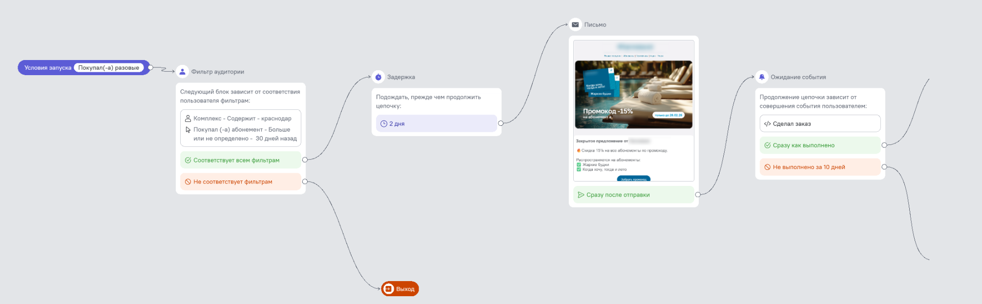 Например, часть клиентов приходит в основном по акциям, выбирает определённые дни недели или покупает только разовые тарифы. Для таких групп мы делаем отдельные предложения и добавляем в коммуникации рекомендации по интересам - чтобы увеличить средний чек и запустить допродажи.