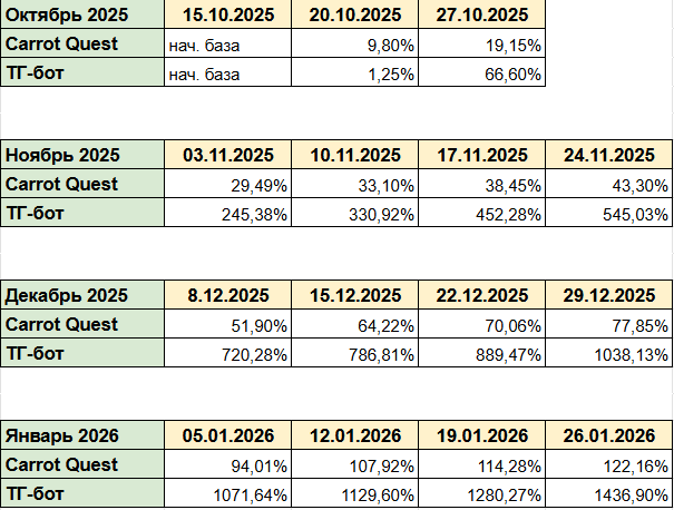 За 4 месяца нам удалось увеличить базу Telegram-бота на 1 436% от начального объёма