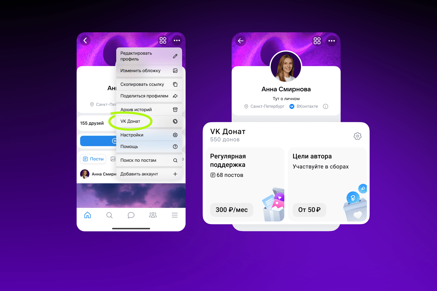 Авторам в VK открыли возможность собирать донаты в личных профилях
