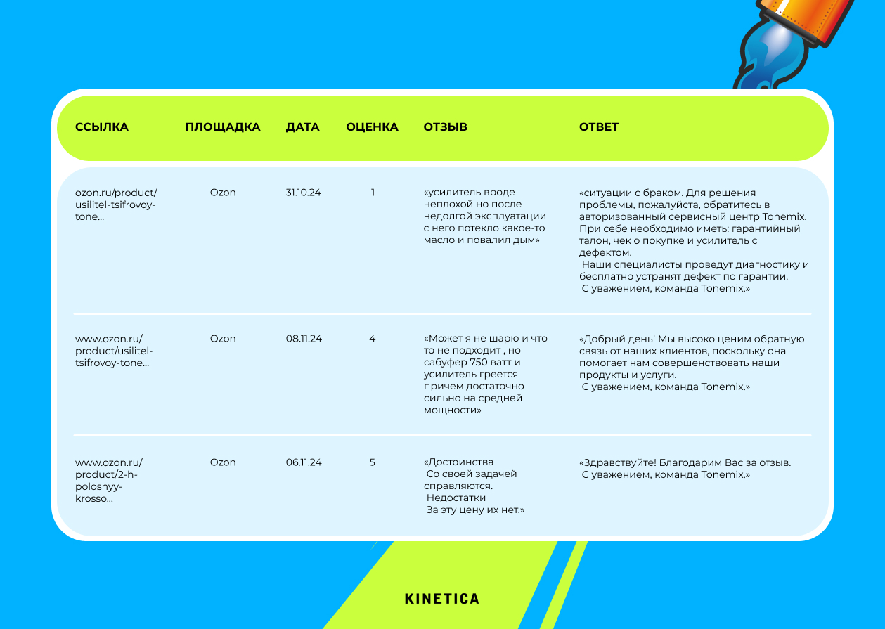 Вот как мы это отслеживаем: динамика отзывов и позиций товаров на разных платформах — тот индикатор, на который всегда обращаем внимание и корректируем стратегию в зависимости от изменений.