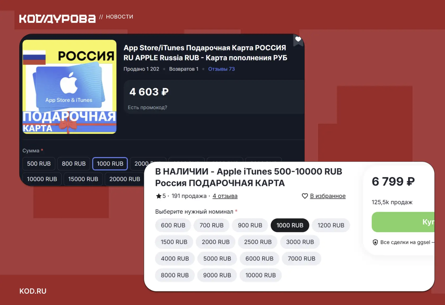 На маркетплейсах продавцы выставляют карты с наценкой 300–600%. За сертификат на 1000 рублей предлагают отдать 4000-7000 рублей.