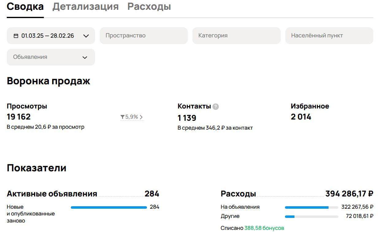 На старте не перегружали аккаунт объявлениями — это важно для новых профилей.