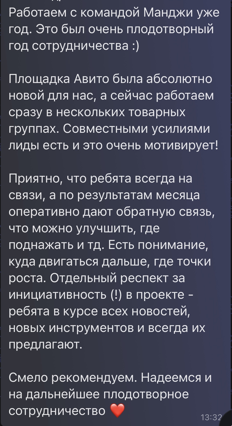 Ниже — отзыв клиента о нашей работе ?