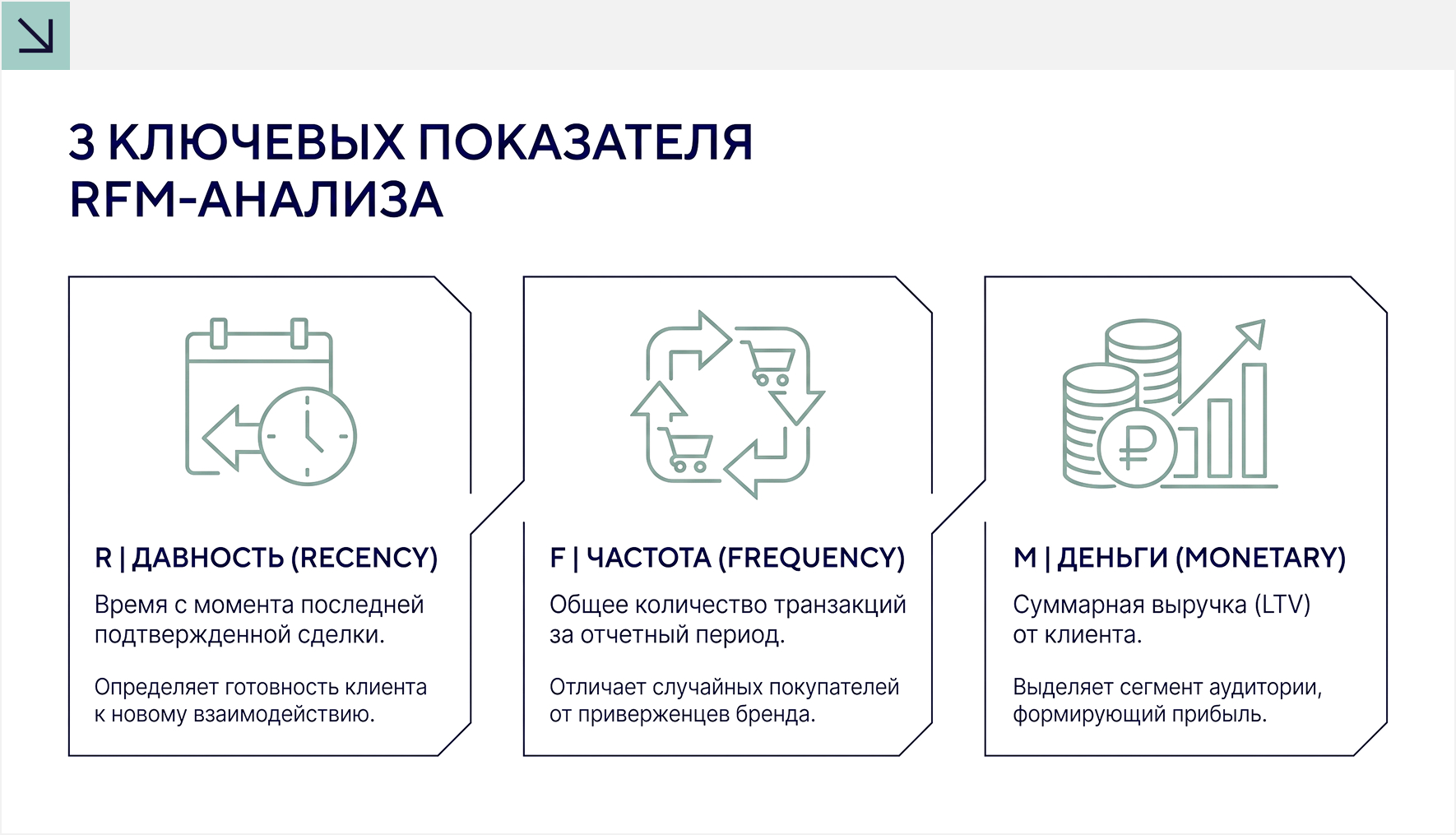 Маркетинг дает результат, когда коммуникация строится на основе фактического поведения покупателей, а не средних показателей по больнице. RFM-анализ позволяет разделить аудиторию на группы по их финансовой активности и применить к каждой из них точечные тактики.