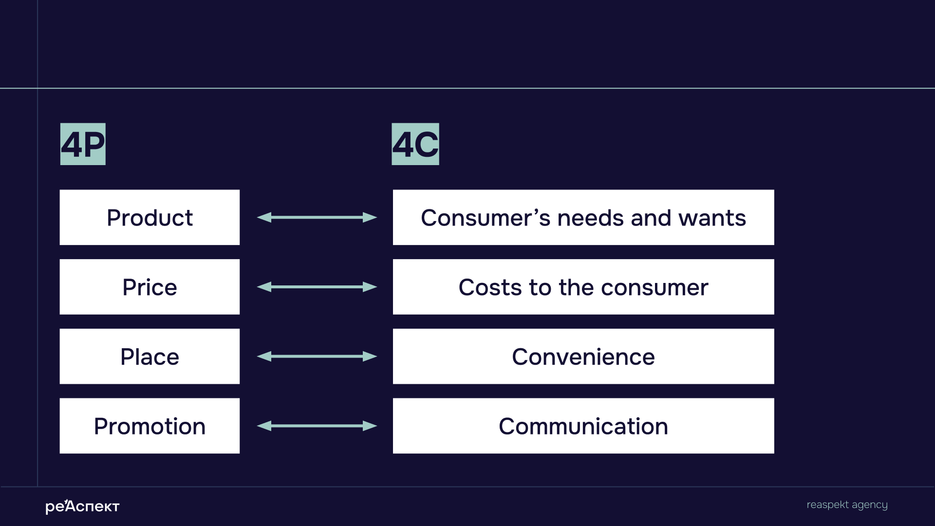 В этой ситуации опорой становятся проверенные десятилетиями модели — 4P и 4C. Они помогают сфокусироваться на константах, которые не зависят от технологий.