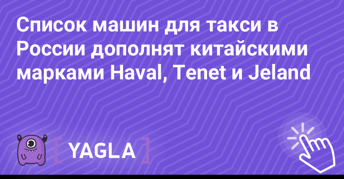 Список машин для такси в России дополнят китайскими марками Haval, Tenet и Jeland