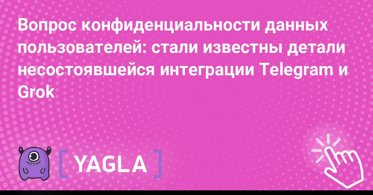 Интеграция Telegram и чат-бота Grok не состоялась из-за вопроса обеспечения конфиденциальности данных пользователей мессенджера, пишет издание «Код Дурова».