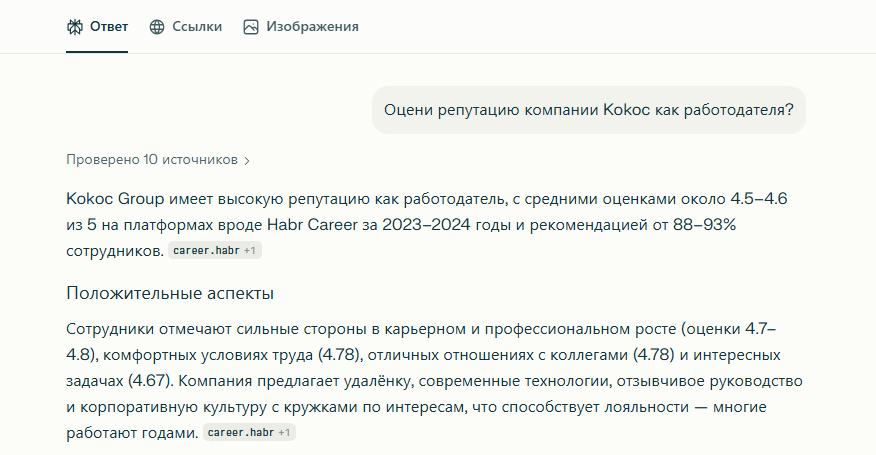 Много хайпа из ничего. В 2025 году многие клиенты обращались с запросами на продвижение в нейросетях. Слишком велик был соблазн сделать сырой продукт и оказывать услугу, как следует не разобравшись в принципах работы и метриках измерения. Kokoc Performance сначала глубоко изучили LLM: знаем, как устроены GPT, Claude, YandexGPT; понимаем, что они ищут в контенте. Затем протестировали продукт на своем сайте и реальных проектах. И лишь потом решились выпустить на рынок услугу продвижения в нейросетях.