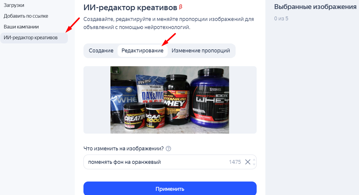 Редактирование изображения с помощью AI-редактора