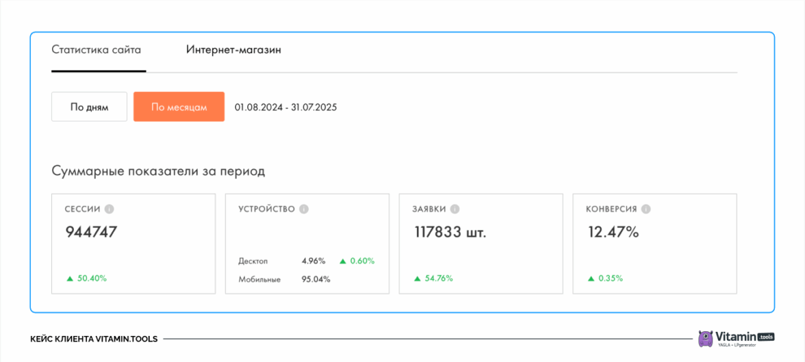 Через личный кабинет клиент всегда видел, сколько и куда ушло денег, мог контролировать обороты и видеть прозрачные отчёты по бюджету. Этот уровень прозрачности ценили особенно после негативного опыта с другими агентствами, где приходилось вытаскивать информацию. В результате работа стала не только быстрее и спокойнее, но и заметно усилила доверие со стороны клиента.