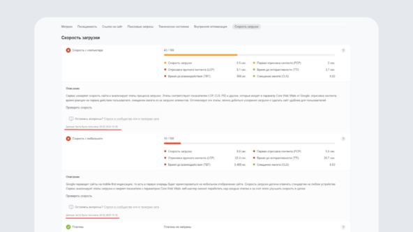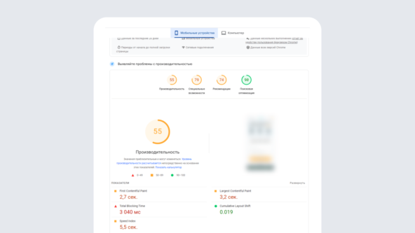 Загрузка компьютера или ноутбука была в зеленой зоне: сайт грузился за 2,5 секунда. А после оптимизации за 1,3 секунды.