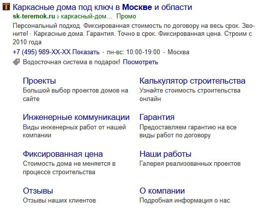 - чёткое УТП — “Каркасные дома под ключ в Москве и области с фиксированной ценой и сроком до 90 дней”