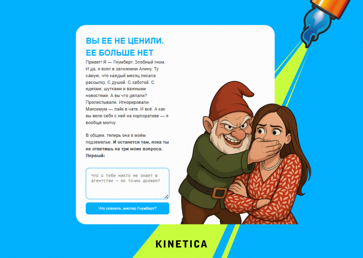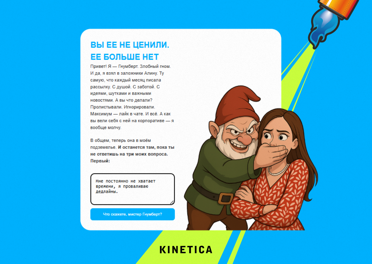 Корпоративные письма обычно никто не читает. Ну серьёзно, кому интересны «итоги квартала» или «новые процедуры согласования»? Мы решили сломать этот паттерн и создали персонажа — Гнома Гнумберта, злобного, но честного корпоративного советника.