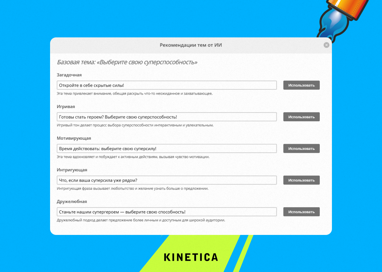Раньше у нас физически не было возможности тестировать больше 2-3 вариантов темы письма. Сейчас мы за один вечер генерируем 20 вариантов, прогоняем их через предиктивную модель (да, тоже на AI) и выбираем 5 самых перспективных для реального A/B/C/D/E-теста.