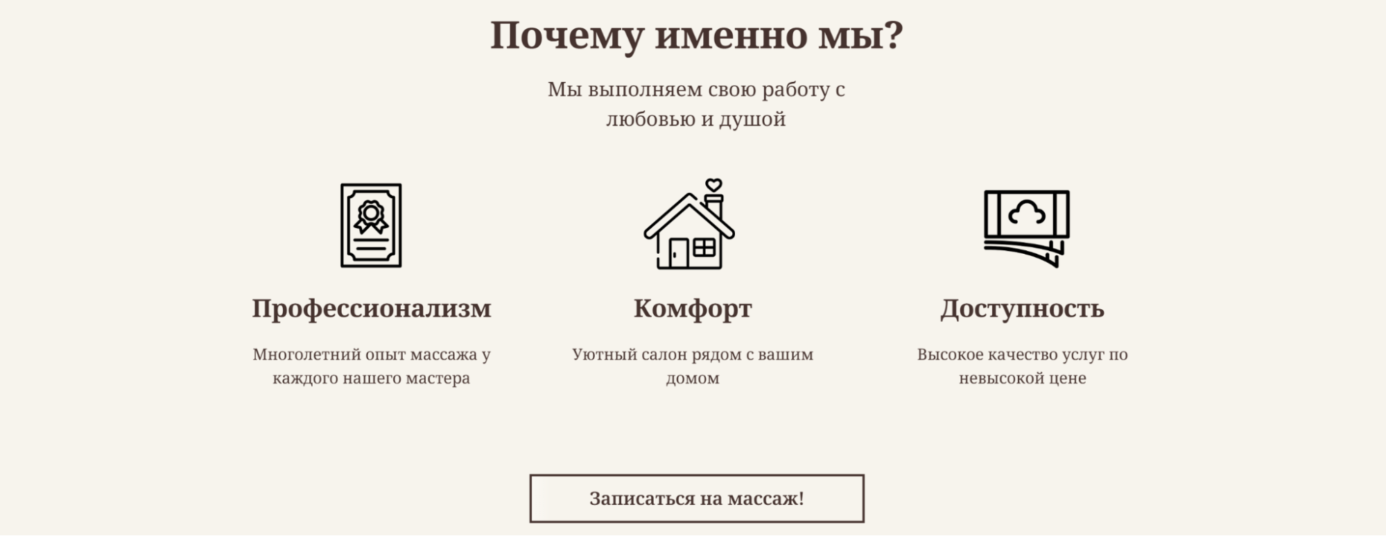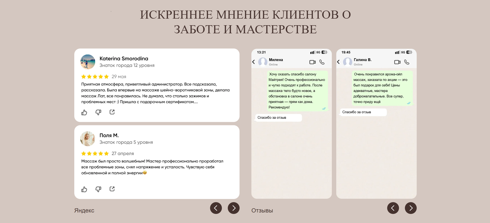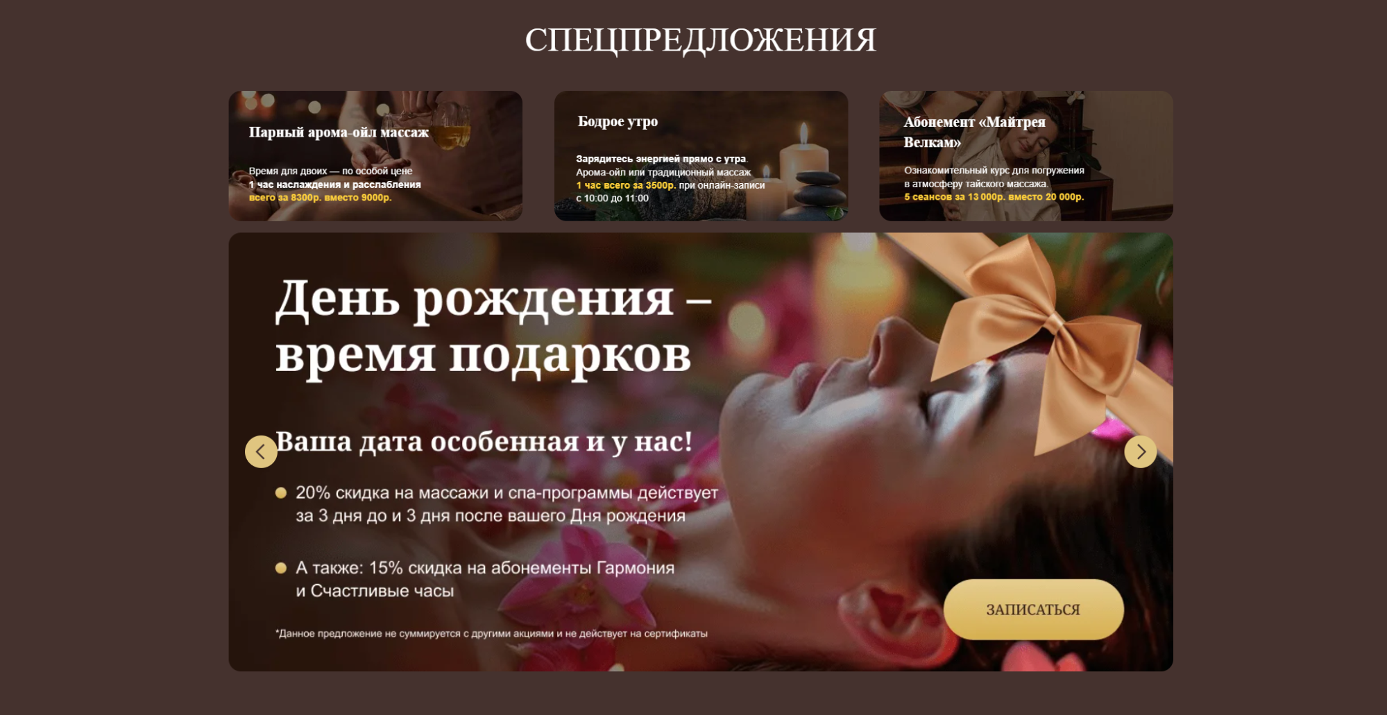 Мы вынесли их на главную страницу, чтобы пользователь сразу видел предложения и мог выбрать подходящую процедуру.