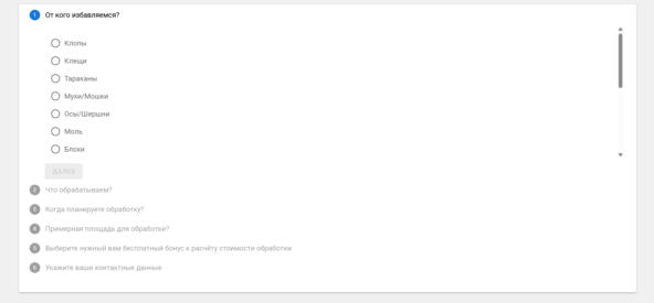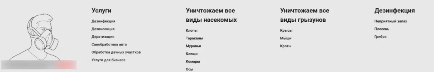 - кампания по насекомым, содержит отдельно запросы и посадочные на клещей, тараканов, клопов, комаров, муравьев;