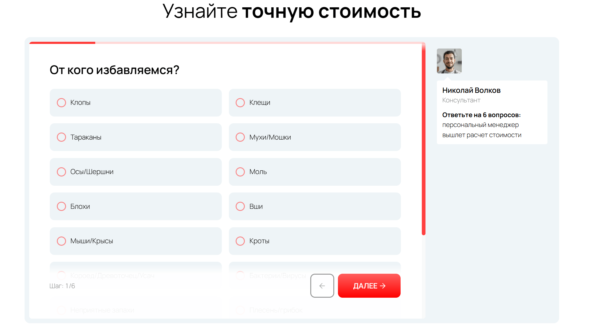 - Также на внутренних страницах сайта изменили визуал квиза. Сделали его более привлекательным и добавили эксперта компании для повышения доверия пользователей;
