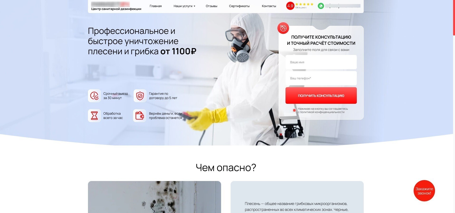 - кампания по дезинфекции, содержит отдельно запросы и посадочные на запах, плесень, грибок;