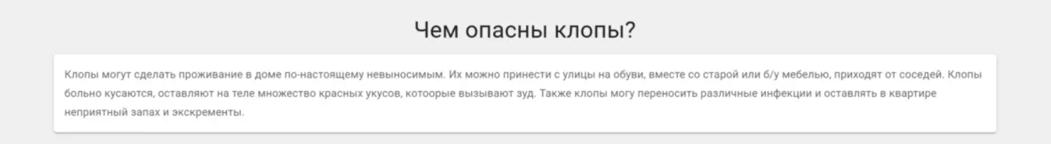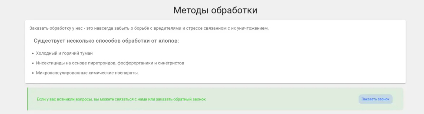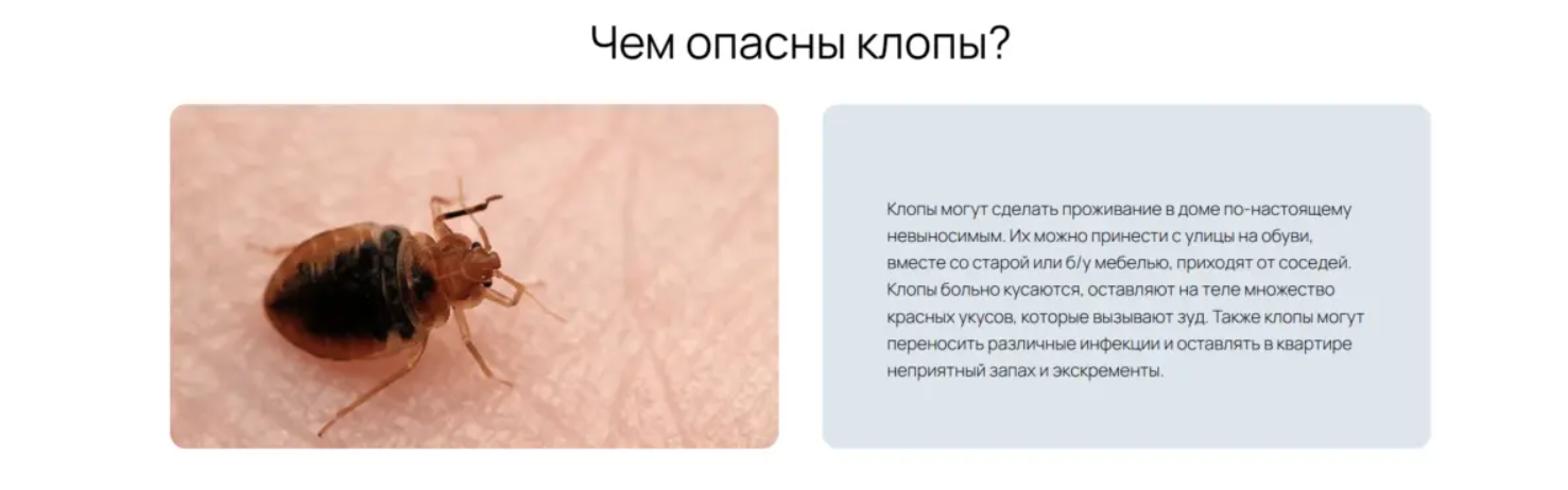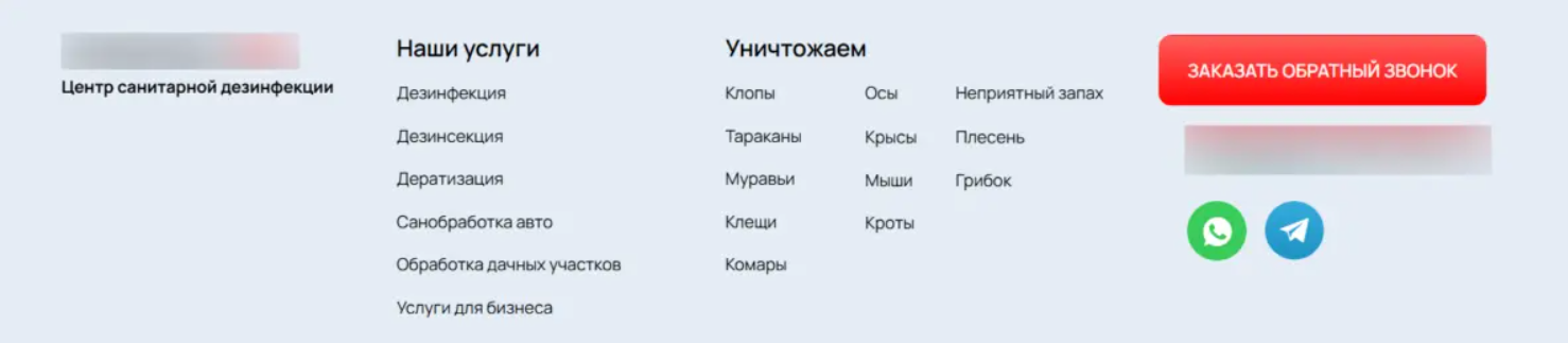 Важно понимать: у клиента начинается сезонный всплеск спроса с апреля (в связи с активностью насекомых), поэтому осень — оптимальное время, чтобы заранее подготовить сайт и рекламные кампании, выйти в топ по нужным запросам («дезинфекция», «санэпидемстанция», «уничтожение клопов», «обработка от тараканов» и др.).