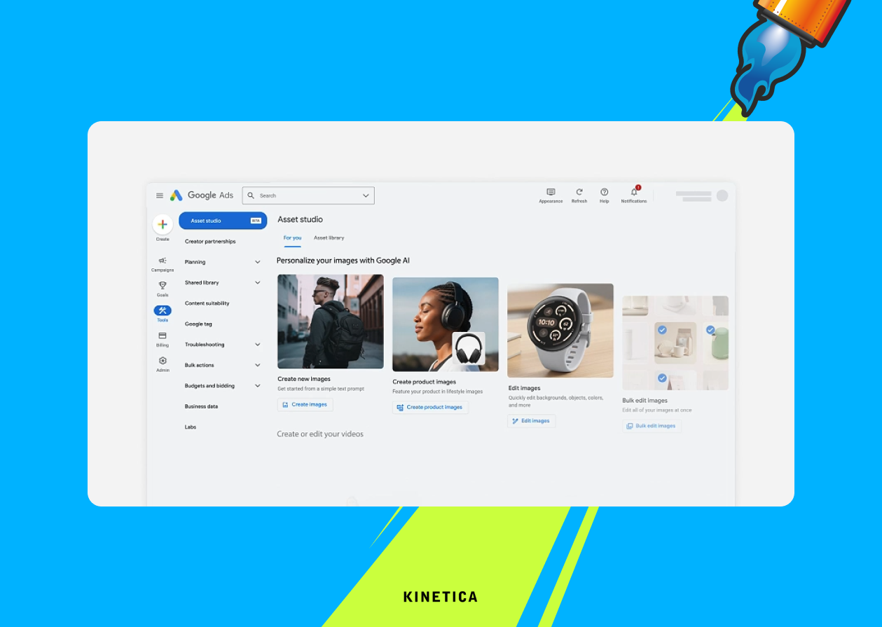 - Asset Studio: генеративный хаб внутри Ads для создания и масштабирования рекламных ассетов.
