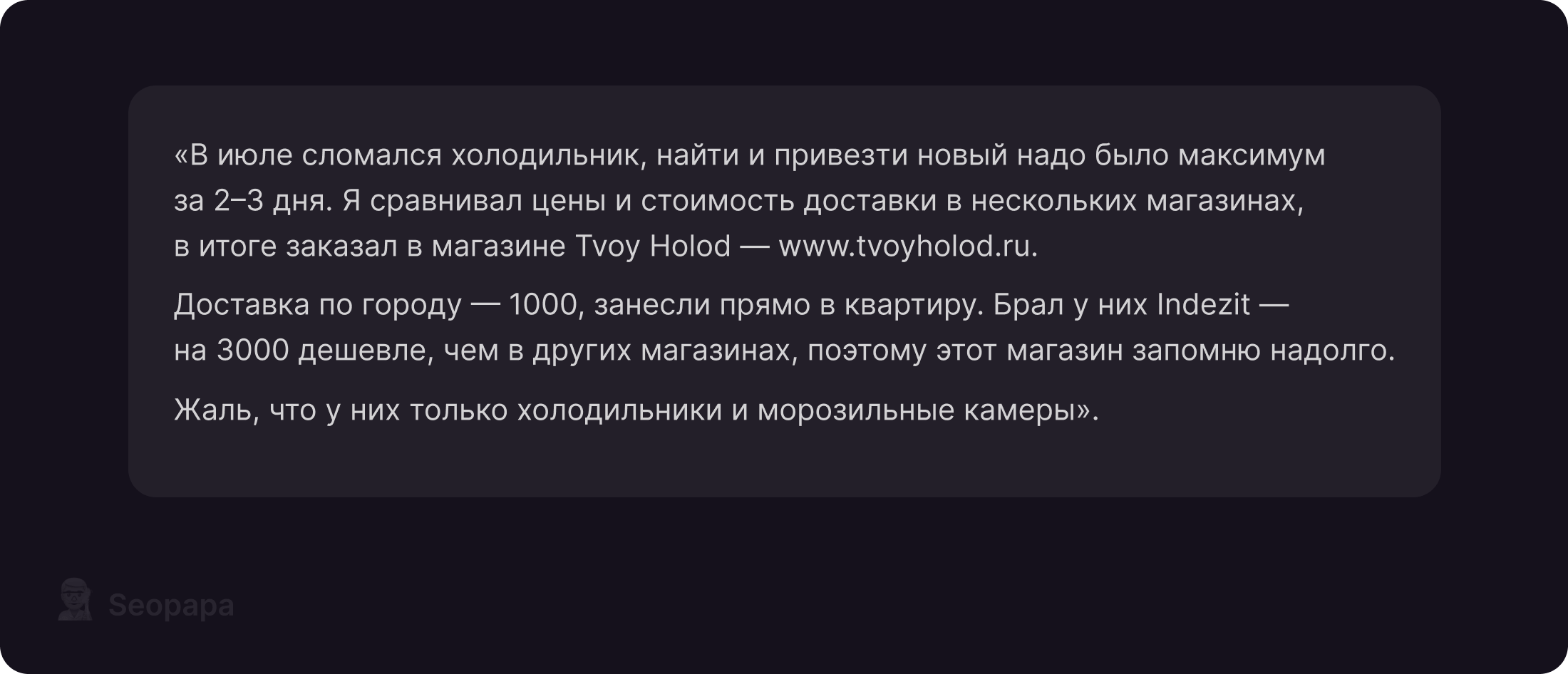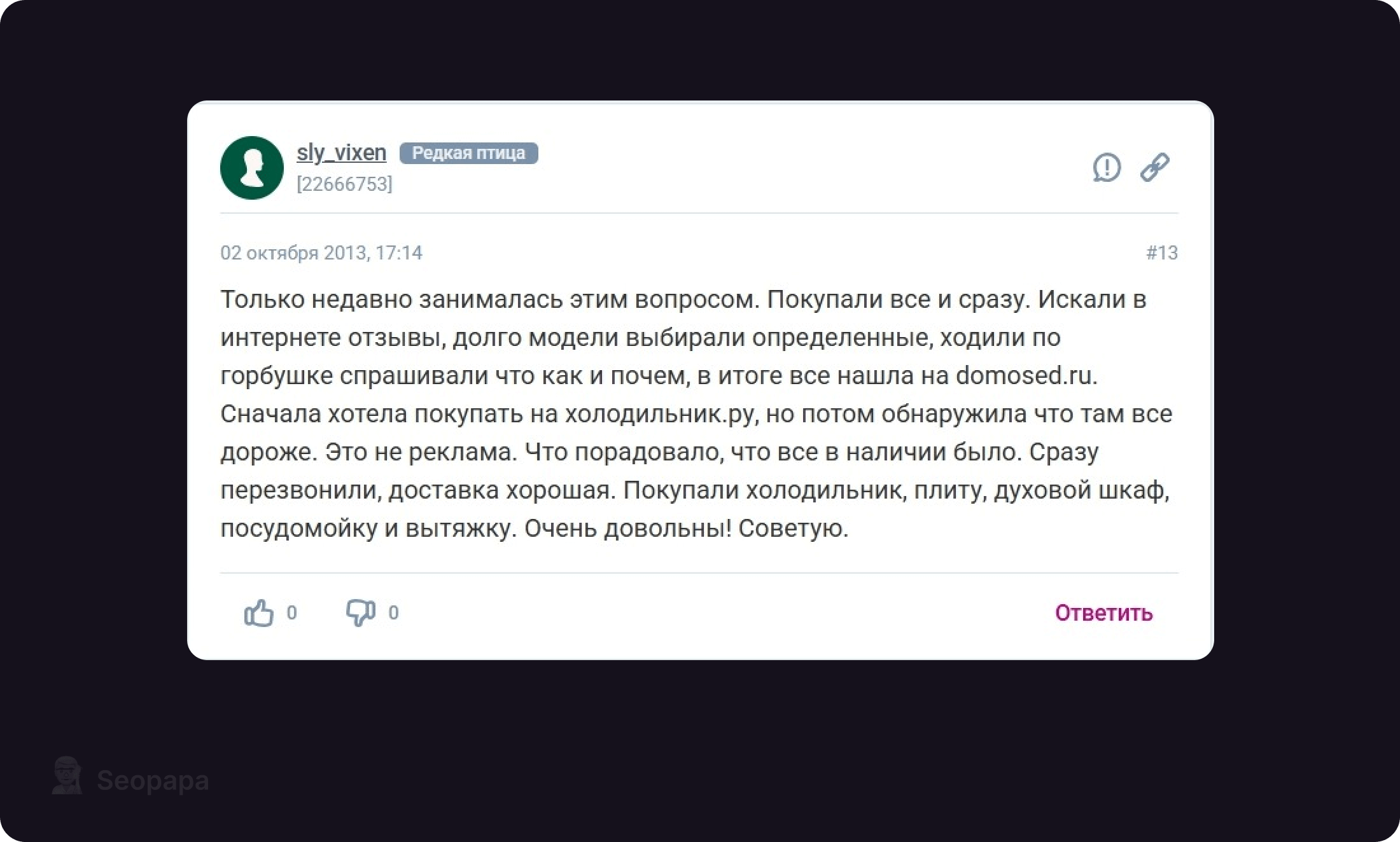 Такой комментарий выглядит живо и правдоподобно: человек рассказывает историю и заодно делится полезной ссылкой.