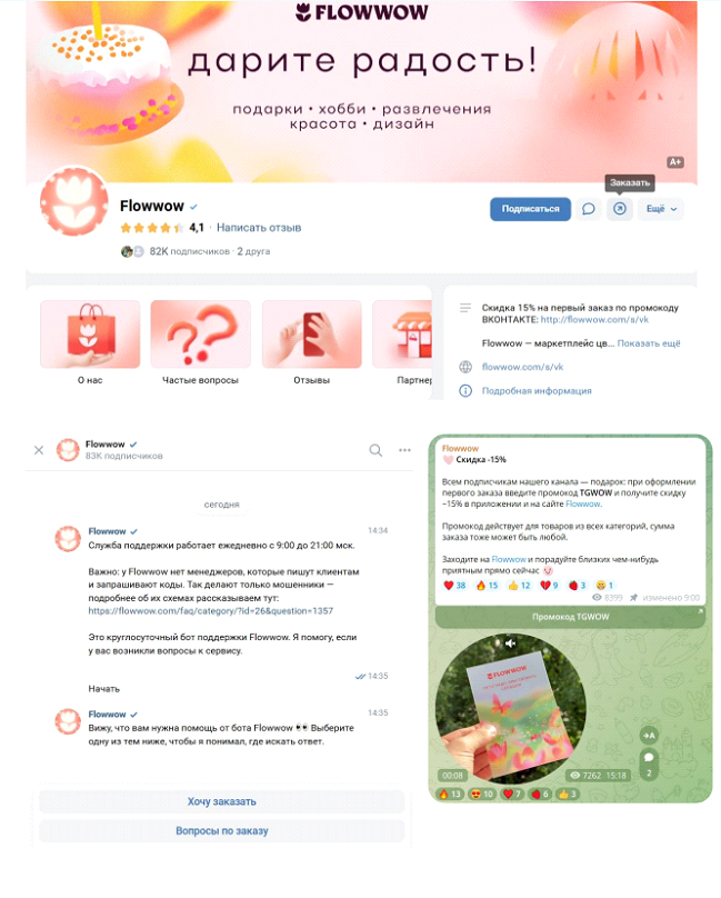 Пример: маркетплейс цветов Flowwow перенес покупку в привычные мессенджеры, чтобы пользователь мог выбрать и оплатить там же, где уже общается. Компания использовала VK Mini App и Telegram Mini App, при этом сделала бесшовную авторизацию и ввела уведомления о статусе заказа.