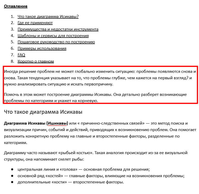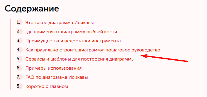 Так, в руководстве по диаграмме Исикавы изначально перечислялись способы построения, и лишь затем давалась пошаговая инструкция.