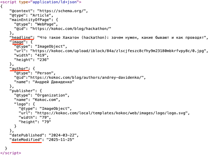 - внедрена микроразметка Schema.org (BreadcrumbList, Article, headline, image, dateModified, author);
