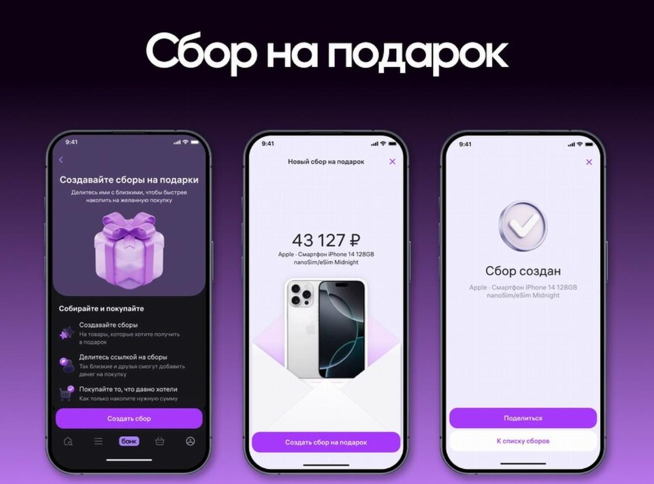 Сервис даёт возможность нескольким людям объединиться для сбора средств на общий подарок или дорогую покупку. Организовать сбор несложно — достаточно выбрать соответствующую опцию рядом с товаром в корзине или создать сбор в разделе «WB Банк», где можно выбрать товар из корзины или «Избранного».