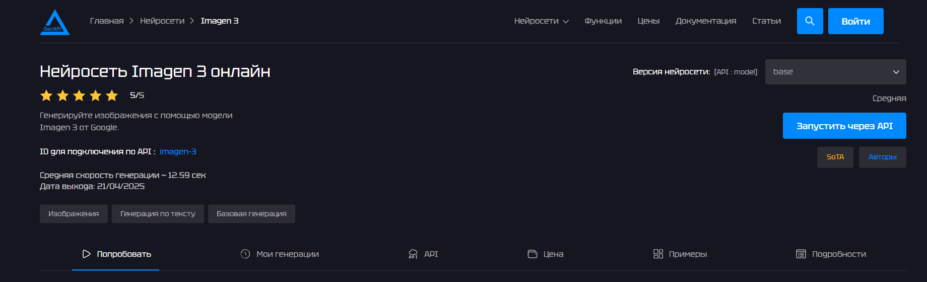 - Тарифы: $0.02/изображение (Imagen 4 Fast), $0.04/изображение (Imagen 4), $0.06/изображение (Imagen 4 Ultra), $0.02/изображение (Imagen 3 Fast), $0.04/изображение (Imagen 3)