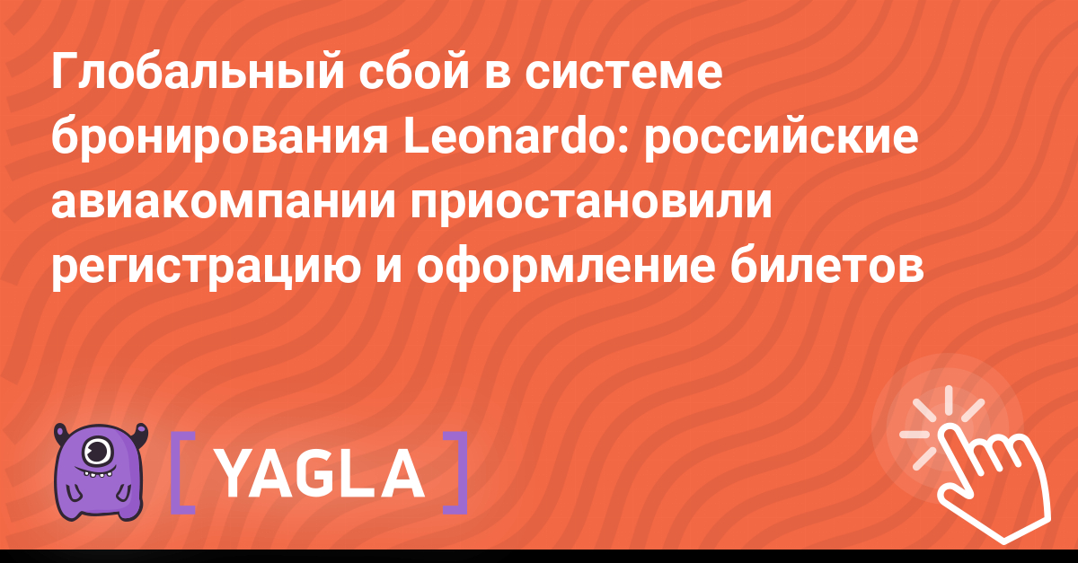 Днём 26 января российские авиаперевозчики сообщили о масштабном сбое в системе бронирования Leonardo («Сирена-трэвел»). Из-за этого временно ограничены регистрация пассажиров и багажа, оформление, переоформление и возврат билетов и дополнительных услуг, сообщает РБК.
