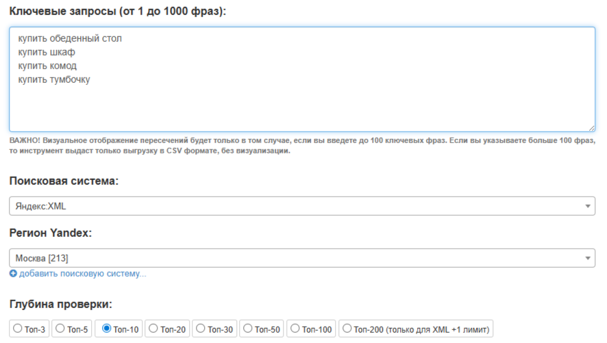 Например, для интернет-магазина мебели приоритетными для клиента считаются разделы: купить обеденный стол, купить шкаф, купить комод, купить тумбочку.