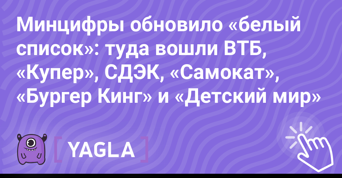 Минцифры обновило «белый список»: туда вошли ВТБ, «Купер», СДЭК, «Самокат», «Бургер Кинг» и «Детский мир»