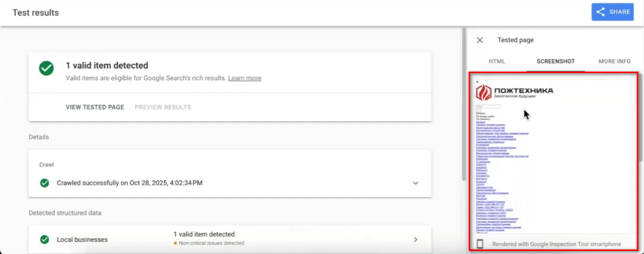 В технической части тоже обнаружились проблемы. Google видит страницу сайта так: