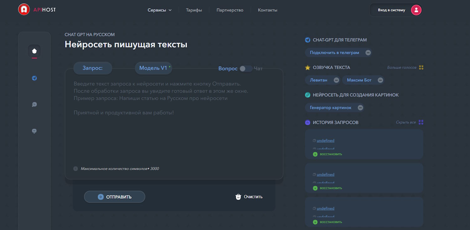 - Дополнительные функции: генерация других текстов (статьи, рерайт, SEO тексты), переводы, ответы на вопросы, работа с изображениями и видео