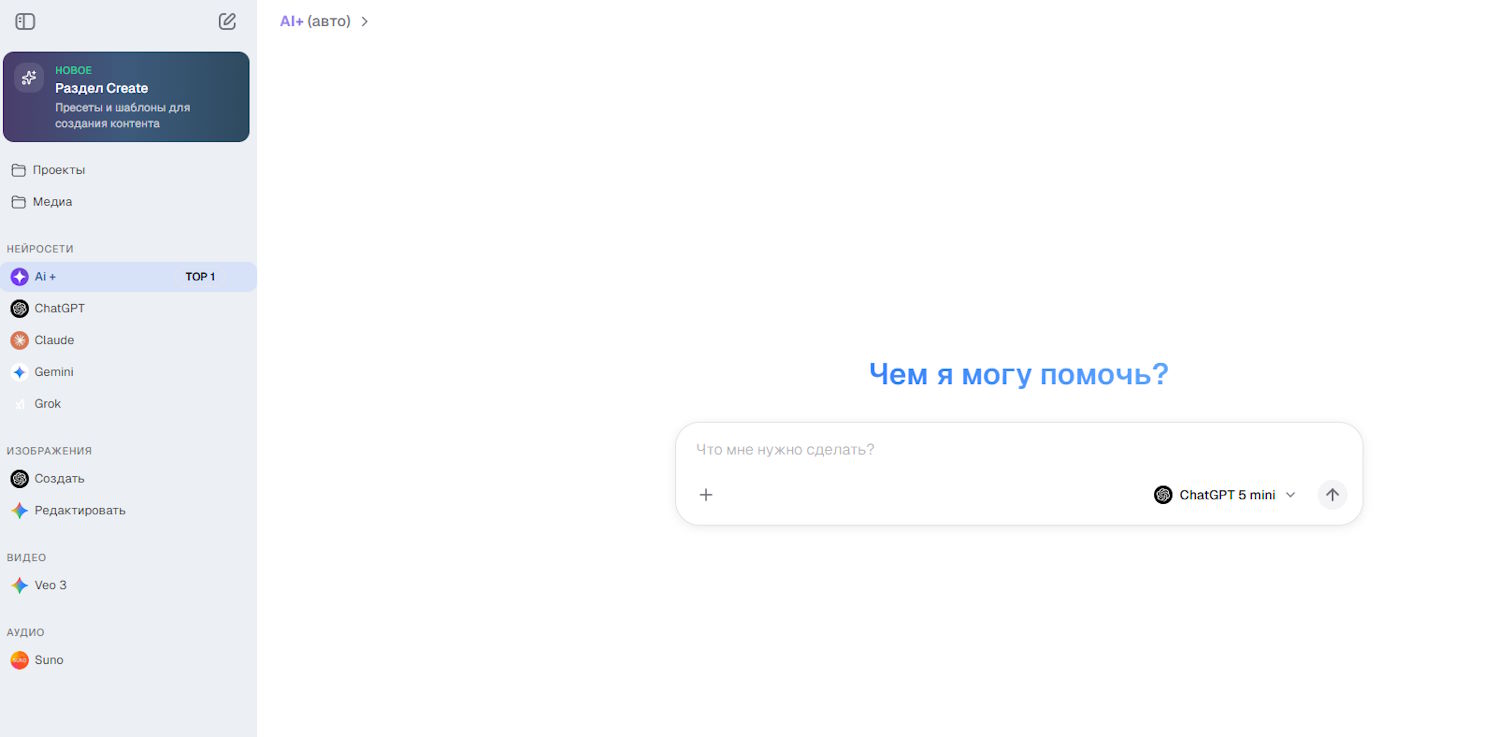 - Система автоматически подбирает лучшую модель нейросети под ваш запрос — меньше головной боли с настройками.