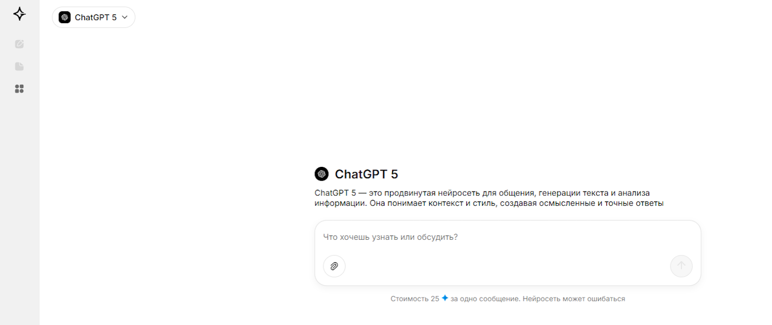 Продвинутая нейросеть, которая умеет не просто болтать, а реально понимать ваш запрос и выдавать осмысленные ответы на разные темы: от написания отзывов до анализа информации и генерации идей. Она работает на базе одной из самых современных моделей ИИ от OpenAI, которую по характеристикам называют универсальной и мощной для рабочих и творческих задач. Мне особенно понравилось, что текст получается связным и логичным даже на сложные темы — можно попросить сделать отзыв подробным, с нужным тоном и конкретикой. Такой инструмент отлично подойдет, когда обычные генераторы начинают «плоско» отвечать.