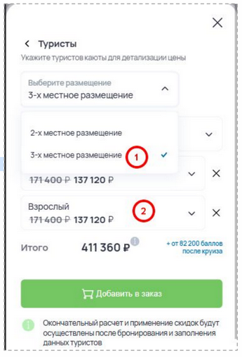 Это может негативно сказаться на конверсионности в заявки для целевой аудитории — семьи. Конкуренты же при выборе каюты сразу предлагают обозначить количество взрослых и детей.