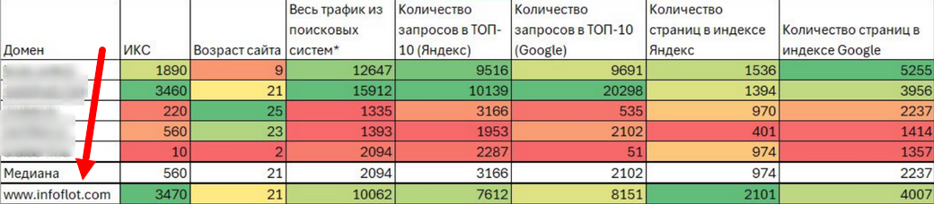 Мы взяли два основных конкурента, которые немного выше «Инфофлота» в плане видимости в Google и Яндекс и наглядно показывают нам точки роста сайта.
