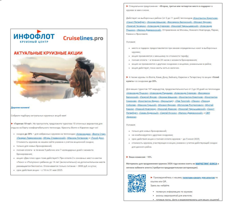 - Дополнительно — наращивать информационный трафик по смежным темам и закрывать вопросы потенциальных клиентов о круизах и подготовке к ним.