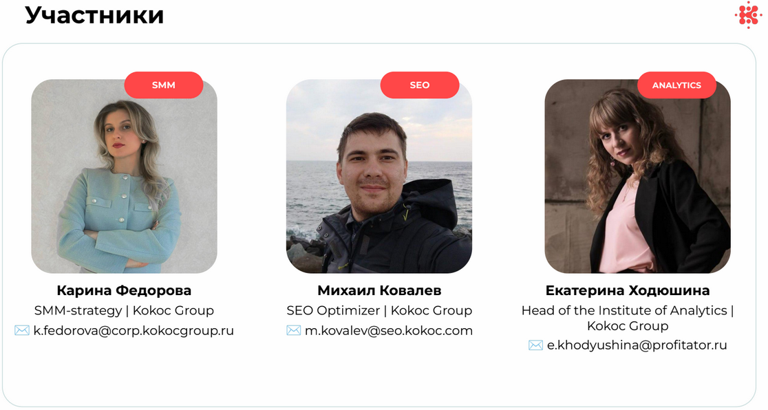 Миша Ковалев — более 13 лет в SEO и успел поработать во всех топовых компаниях. После его ухода сайты упали на дно, и только при Мише все держится в топе. Как это ему удается — самый большой секрет. Есть легенда, что однажды, в лунную ночь, Мишу видели в поле, а следом за ним по лунной дорожке бежали качественные SEO-ссылки. А еще Миша очень любит нейросети. У нас все знают: нейросети — это Миша!Андрей Смирнов, руководитель группы оптимизации kokoc.com.