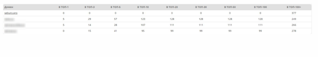Пока наш сайт готовится к запуску, конкуренты уже активно работают. Мы взяли для сравнения два сайта, которые имеют тысячи позиций в поисковой выдаче. Видим, что у клиента нет запросов в топ-1, топ-3, топ-10 и даже в топ-100, в то время как у конкурентов запросный индекс хороший.